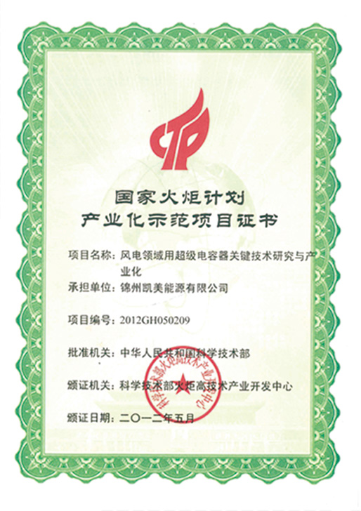 ◆ Undertook the national key science and technology project "National Torch Plan Industrialization Demonstration Project" - research and industrialization of key technologies for supercapacitors in the field of wind power.